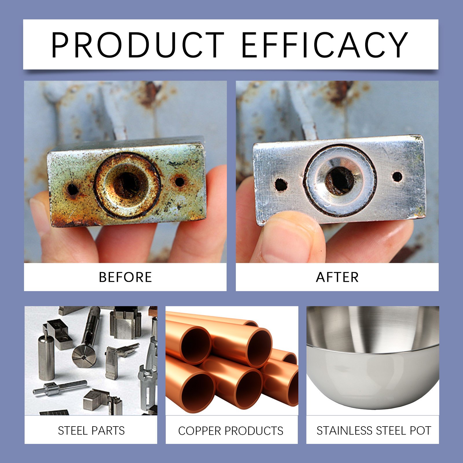This formula helps dissolve stubborn rust in as little as 8 - 60 seconds, depending on buildup.