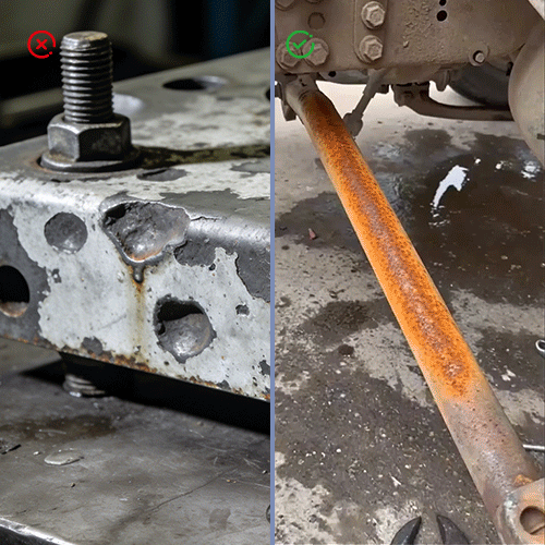 Harsh acids damage everything - rust and metal alike - causing pitting, weakened structure, and ruined finishes. This formula uses Smart-Target Binding™ to attack only oxidized iron, leaving stainless steel, cast iron, and aluminum untouched. One user cleaned a vintage motorcycle frame in 15 seconds with zero surface harm- something no acid could ever do.